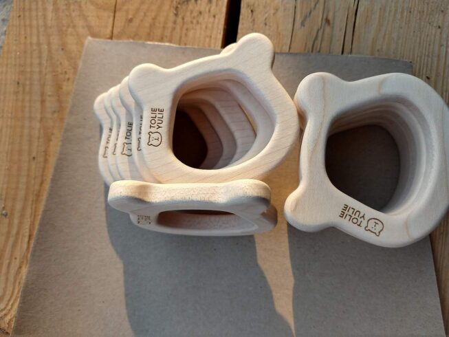 Wykonujemy je na zamówienie, dzięki czemu możemy zaprojektować i wyprodukować dowolny wzór gryzaka według Twojego lub naszego projektu. Do produkcji używamy drewna klonowego, które jest uznawane za najlepszy gatunek drewna na gryzaki. Klon jest bardzo lekki, dość miękki i posiada naturalne właściwości antybakteryjne, dzięki czemu idealnie nadaje się do masowania dziąseł maluszków. Tutaj znajduje się bardzo ciekawy artykuł na temat właściwości gryzaków drewnianych.