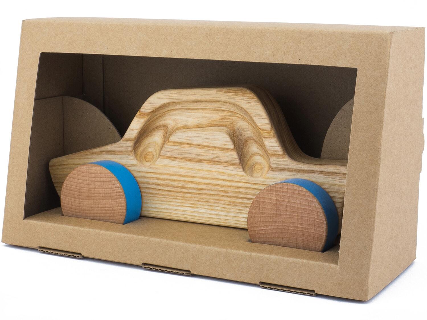 Opakowanie również wykonane zostało według naszego projektu. Założenie było takie, żeby zabezpieczyć samą zabawkę, ale równocześnie żeby była ona widoczna bez otwierania kartonu. Osiągnęliśmy cel i nawet więcej, bo karton składa się z jednego kawałka, bez użycia kleju i bez dodatkowych elementów trzymających autko.
